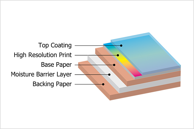 - TOPPAN’s special embossing technology realizes the look and feel of real veneers. Different finishes are available: synchronized optical embossing, touch and sensation of sanded real wood veneer, synchronized tactile effect, etc.